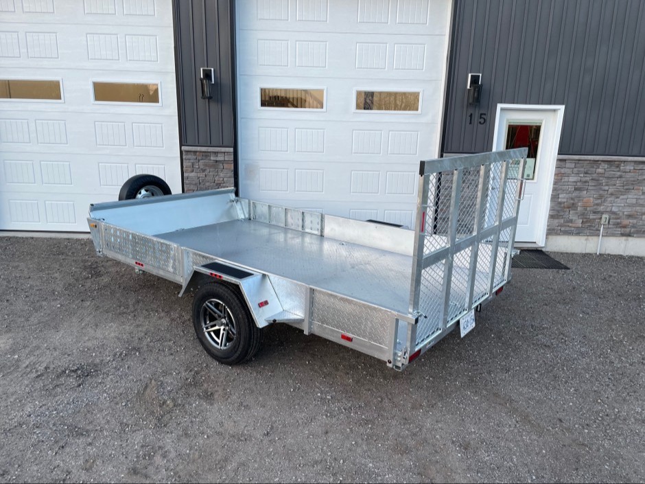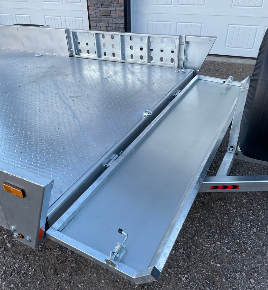 - Rear gate provides low clearance for loading SxS, ATV and small tractors; Rear gate also folds in flat to the deck