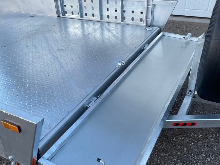 This model is versatile for a variety of cargo. The removable side ramps are quick and easy for side loading!